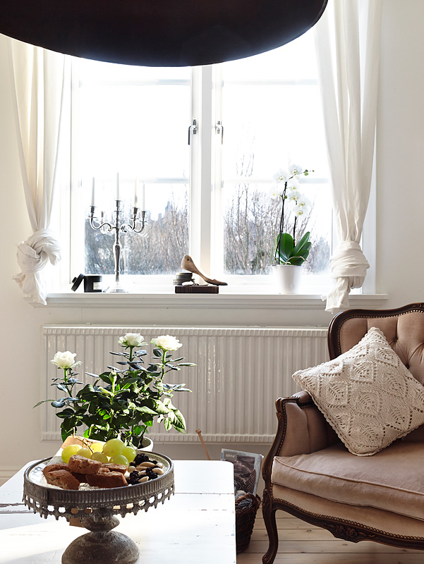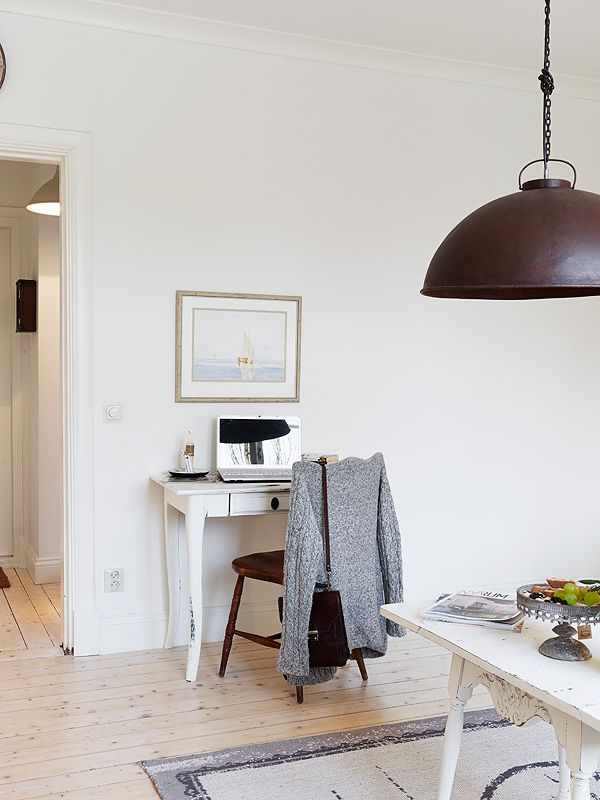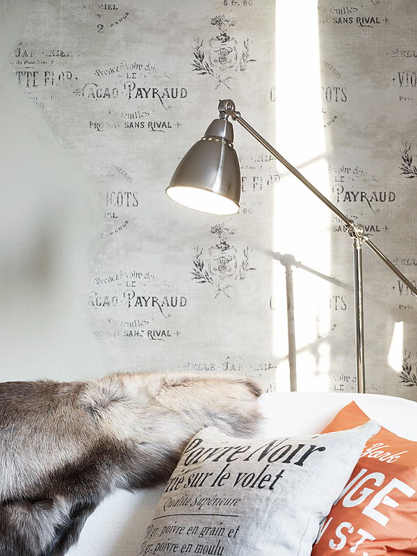 Nieduży (50m2) apartament w Sztokholmie, ciekawie stylizowany, nazwy winnych szczepów pojawiające się na deskach zagłówka w sypialni potwierdzają, że panuje tu klasyczny vintage.